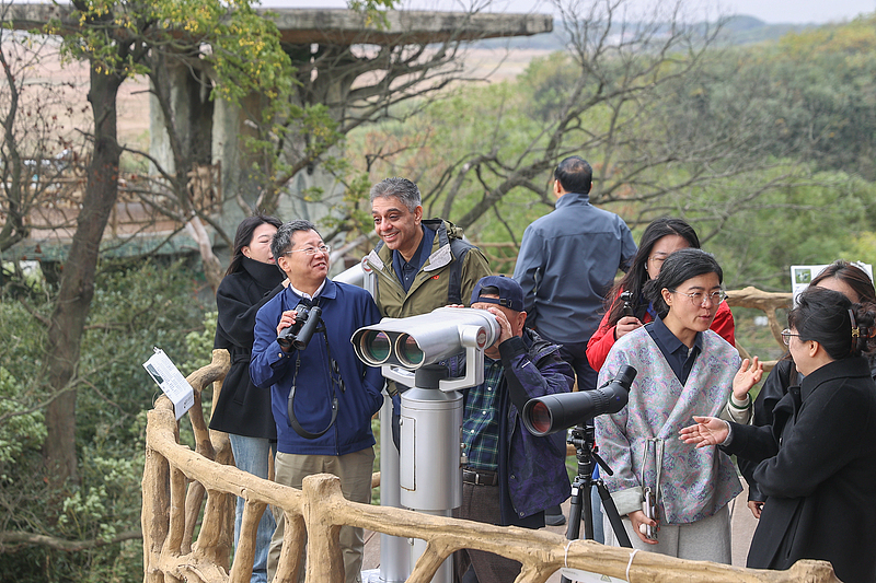 17 नवंबर 2025, पोयांग झील आर्द्रभूमि में एक पक्षी-दर्शन स्थल पर देश-विदेश के अतिथि दूर के प्रवासी पक्षियों का अवलोकन कर रहे हैं। (VCG)