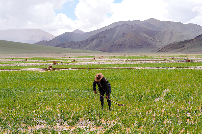 शीत्सांग स्वायत्त प्रदेश के आलि में एक किसान घास के मैदान पर काम कर रहा है। (VCG)
